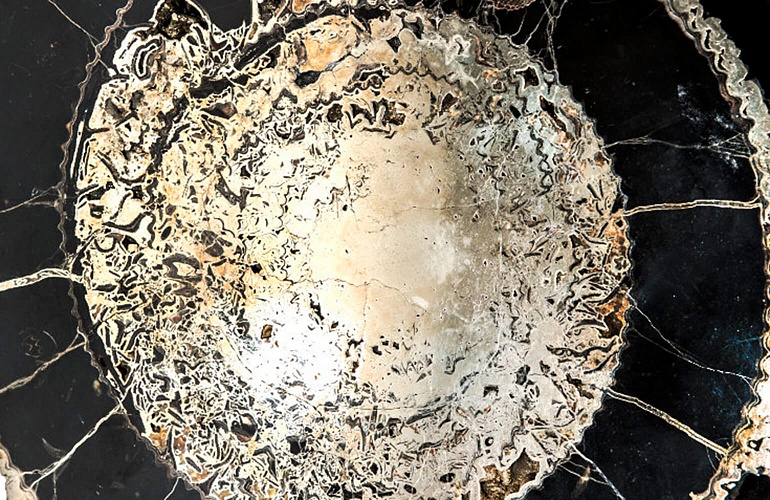 Разрезать аммонит — всегда волнующая загадка. В раковине древнего моллюска за века образуются отложения горных пород и минералов. Добытчика может ожидать внутри и радуга сияющих минералов в узорчатых камерах, и сплошной чёрный мергель с парой пустых или сломанных камер.