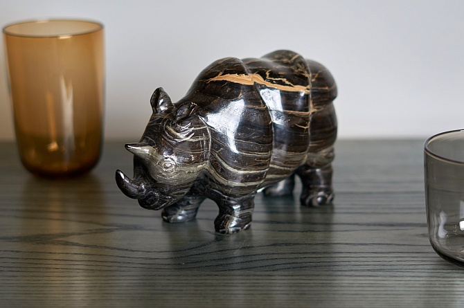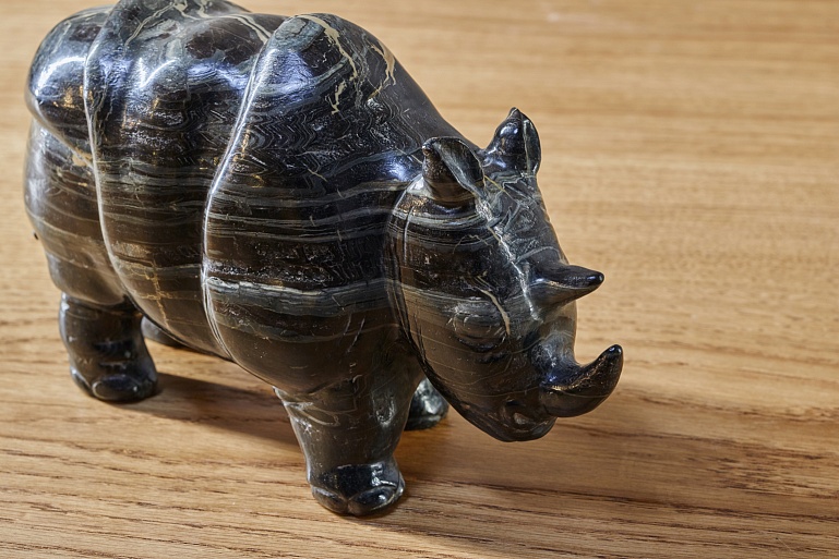 Скульптура украсит стеллаж или письменный стол из натурального дерева. Каменный носорог засвидетельствует об уверенности и сдержанном вкусе владельца.