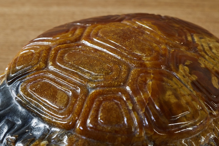 The most beautiful part of the simbircite is revealed on the shell of the turtle. You can see the diversity of colors, overflows of honey-like shades of ancient nature.